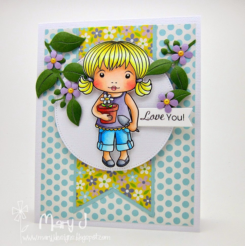 She is so pretty! And I love her little leg bands and roses on her shoes! I matched her up with Echo Park papers for a splash of yellow.